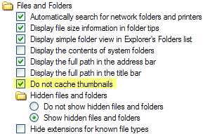 To turn off thumbnail caching, open Tools > Options in Windows Explorer and click on the View tab. Check the box next to Do not cache thumbnails and click OK.